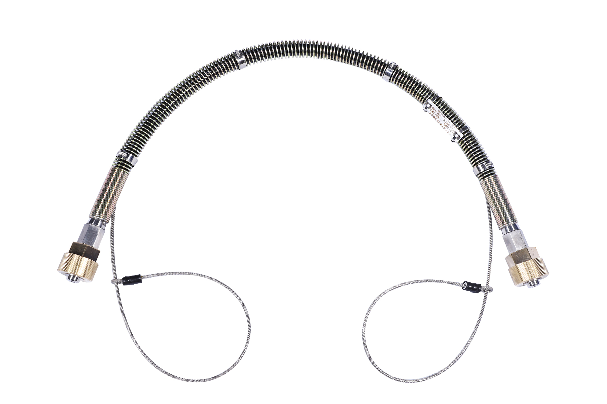 1/2進(jìn)口撓性阻燃材質(zhì)、外加整體彈簧、整根防甩繩保護(hù),兩端CGA1350LH(f)銅螺母帶防塵堵頭.具有耐燃、耐腐蝕、耐水、耐老化、撓性良好、結(jié)構(gòu)牢固、工作可靠等優(yōu)點(diǎn)。兩端端接可選、長度可選、通徑可選。